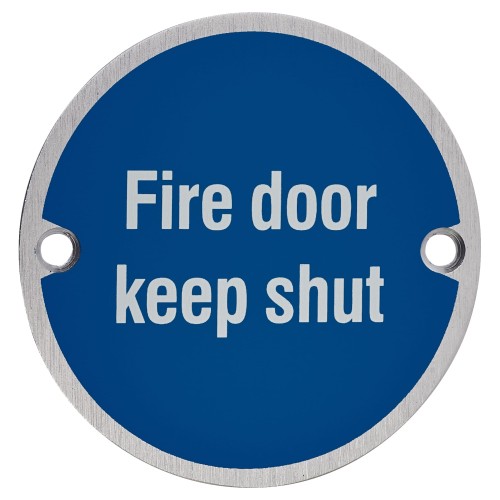 Exel Fire Door Keep Shut Door Sign - 75mm Diameter - Satin Aluminium