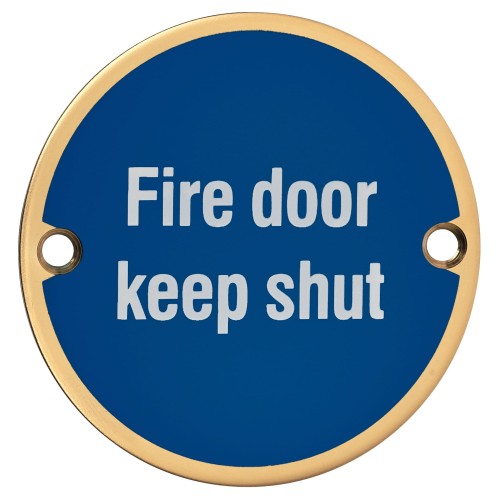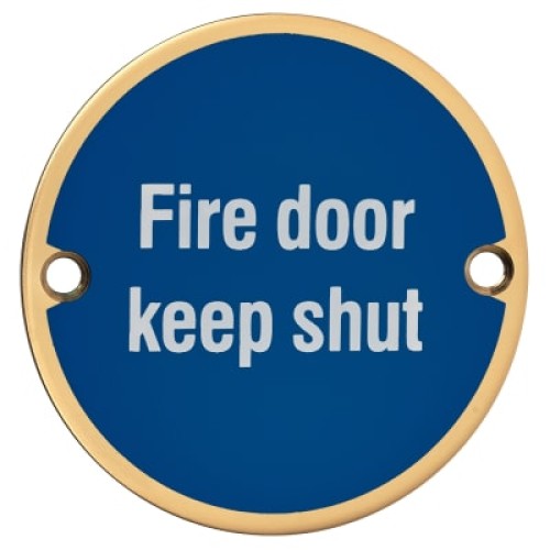 Hampstead Fire Door Keep Shut Door Sign - 75mm Diameter - Polished Brass