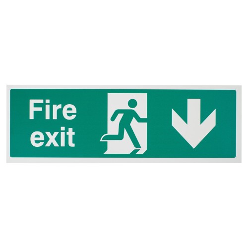 Exel Double Sided Fire Exit Down Arrow Sign - 450 x 150mm - Rigid Foam