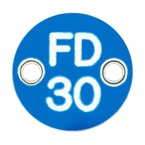 Exel FD30 Fire Door Sign - Drilled - 25mm Diameter - Rigid Plastic - Blue
