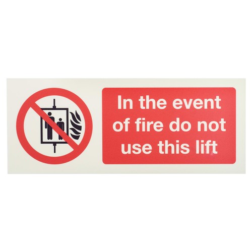 • Exel Photoluminescent In The Event Of Fire Do Not Use This Lift - 200 x 100mm - Rigid Plastic