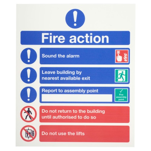 Exel Photoluminescent Symbolised Fire Action Notice Sign - 250 x 300mm - Rigid Plastic