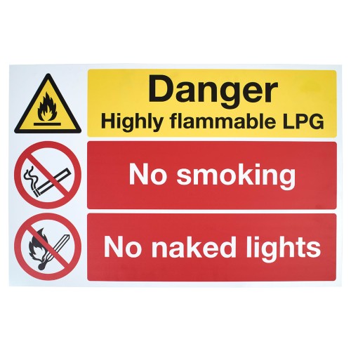 Exel Danger Highly Flammable LPG/No Smoking/No Naked Lights Signs - 600 x 400mm - Rigid Plastic