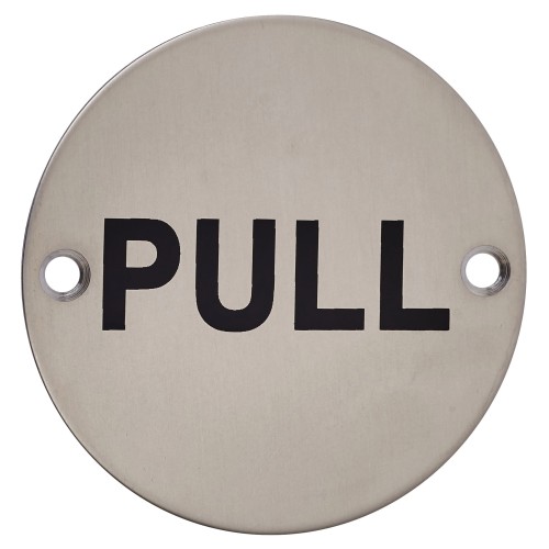 Exel Pull Door Sign - 75mm Diameter - Satin Stainless Steel