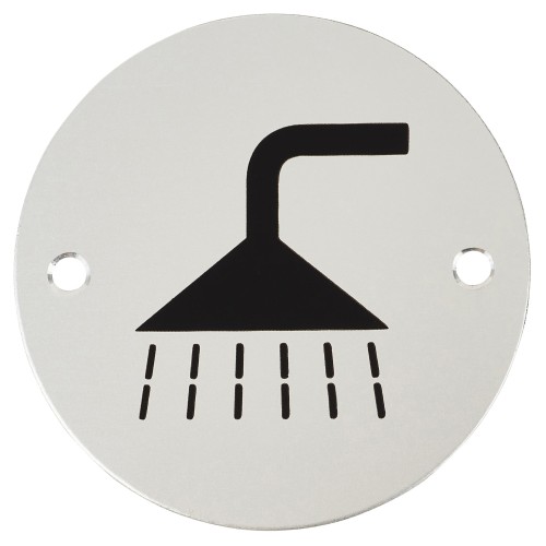 Exel Shower Door Sign - 75mm Diameter - Satin Aluminium
