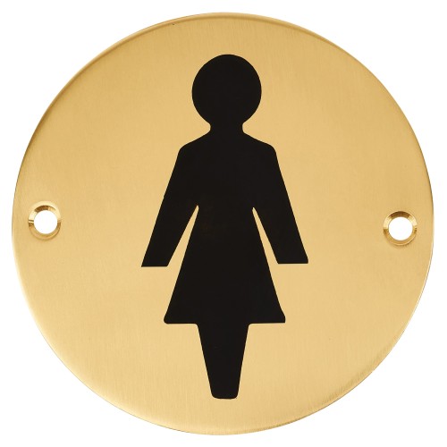 Hampstead Ladies Toilet Door Sign - 75mm Diameter - Polished Brass