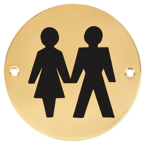 Hampstead Unisex Toilet Door Sign - 75mm Diameter - Polished Brass