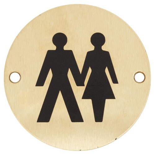 Hampstead Unisex Toilet Door Sign - 75mm Diameter - Satin Brass