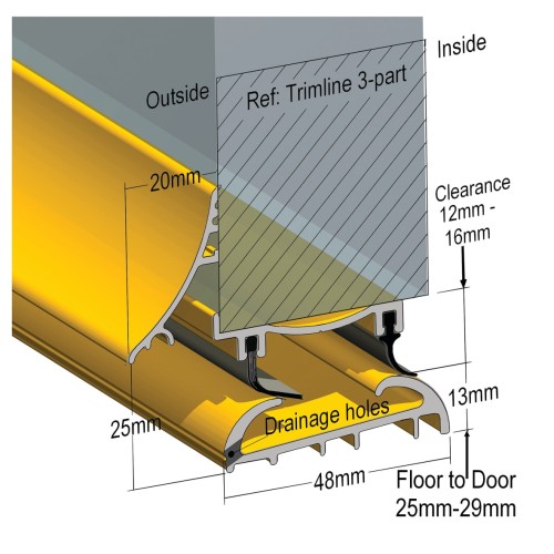• Stormguard Trimline 25 3-Part Threshold - 914mm Length - Inward/Outward Opening Doors - Gold