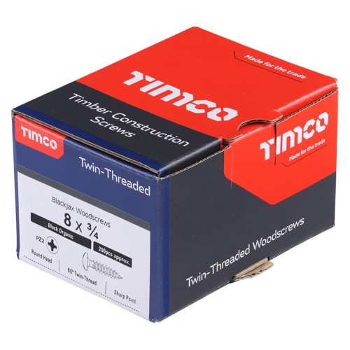 TIMCO Blackjax Pozi Round Head Wood Screws - 8 x 3/4" - Exterior Black Organic - Pack of 200