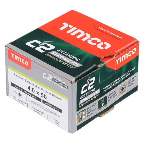 TIMCO C2 Exterior Pozi Countersunk Wood Screws - 4.0 x 50mm - Silver Organic - Pack of 200