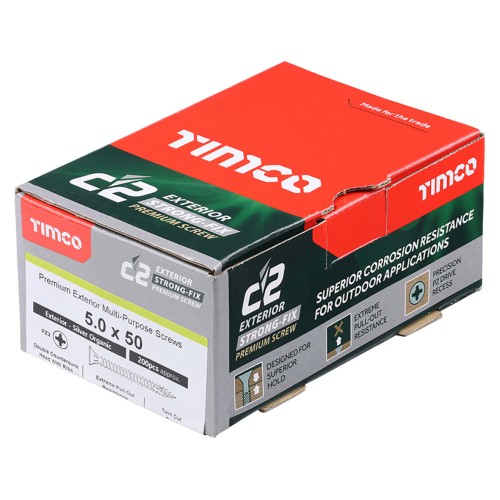 TIMCO C2 Exterior Pozi Countersunk Wood Screws - 5.0 x 50mm - Silver Organic - Pack of 200
