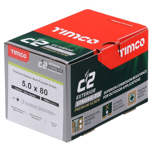 TIMCO C2 Exterior Pozi Countersunk Wood Screws - 5.0 x 80mm - Silver Organic - Pack of 200