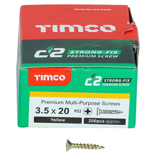 • TIMCO C2 Strong-Fix Pozi Double Countersunk Wood Screws - 3.5 x 20mm - Yellow Zinc - Pack of 200