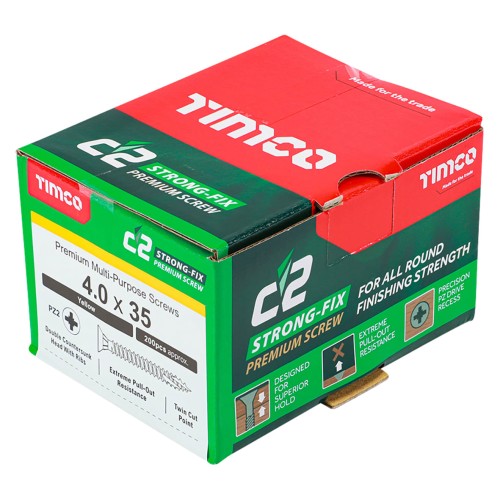 • TIMCO C2 Strong-Fix Pozi Double Countersunk Wood Screws - 4.0 x 35mm - Yellow Zinc - Pack of 200