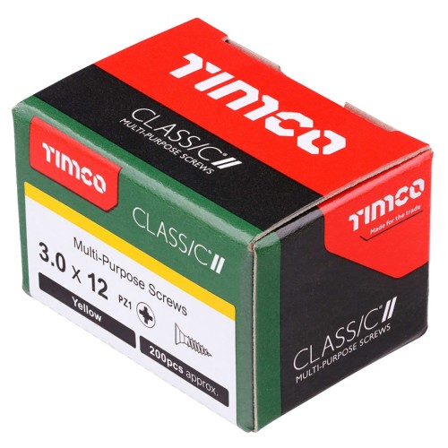 • TIMCO Classic Pozi Countersunk Wood Screws - 3.0 x 12mm - Yellow Zinc - Pack of 200