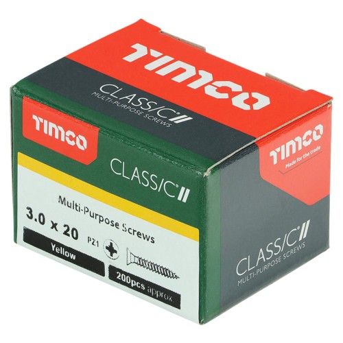 TIMCO Classic Pozi Countersunk Wood Screws - 3.0 x 20mm - Yellow Zinc - Pack of 200
