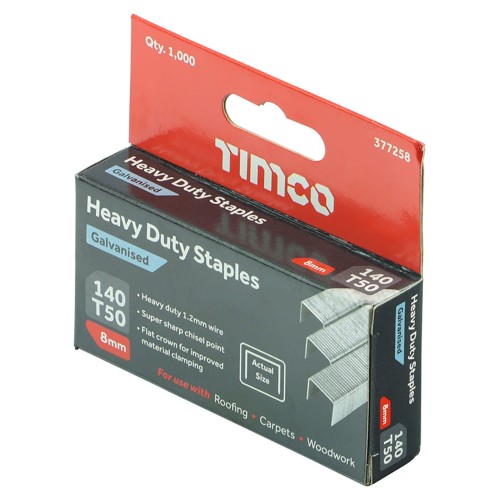 TIMCO Heavy Duty Staples - 8mm Length - Galvanised - Pack of 1000