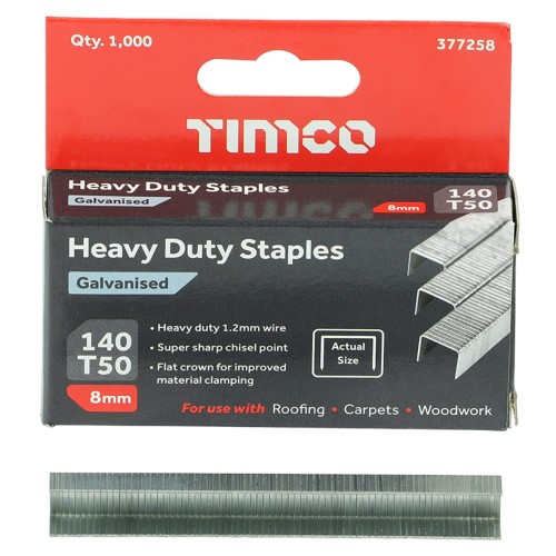• TIMCO Heavy Duty Staples - 8mm Length - Galvanised - Pack of 1000