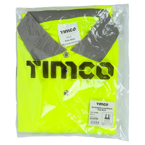 TIMCO Hi Visibility Long Sleeve Polo Shirt - Yellow - XL