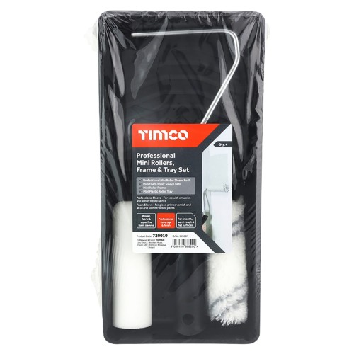TIMCO Pro Short Pile Mini Paint Roller, Frame & Tray - 4"/100mm Width