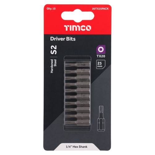 TIMCO Steel Driver Bits - Torx - T20 - 25mm Length - Pack of 10