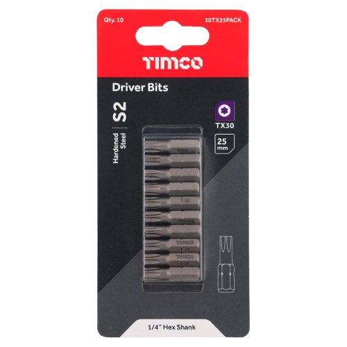 TIMCO Steel Driver Bits - Torx - T30 - 25mm Length - Pack of 10