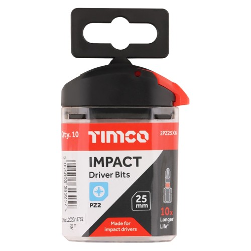 TIMCO X6 Impact Driver Bits - Pozi - PZ2 - 25mm Length - Pack of 10