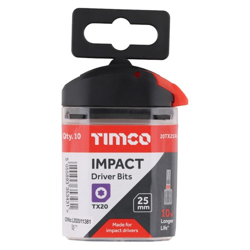 • TIMCO X6 Impact Driver Bits - Torx - T20 - 25mm Length - Pack of 10