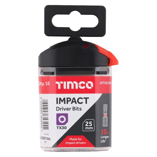 • TIMCO X6 Impact Driver Bits - Torx - T30 - 25mm Length - Pack of 10