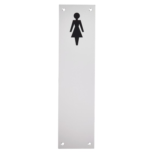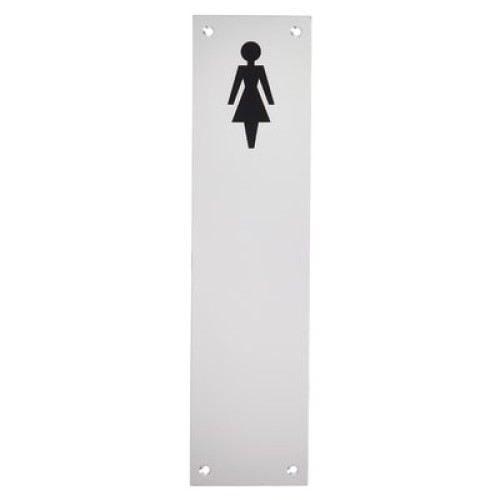 Exel Finger Plate - Ladies Toilet Door Sign - 300 x 75mm - Satin Anodised Aluminium