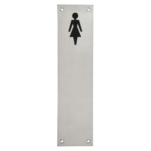 Exel Finger Plate - Ladies Toilet Door Sign - 300 x 75mm - Satin Stainless Steel