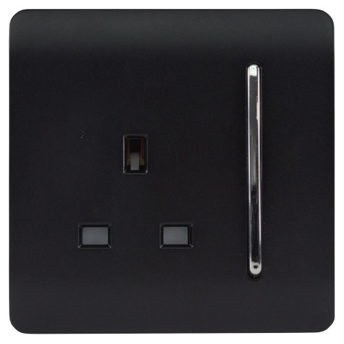 • Trendi 13A 1 Gang Screwless Double Pole Switched Socket - Matt Black