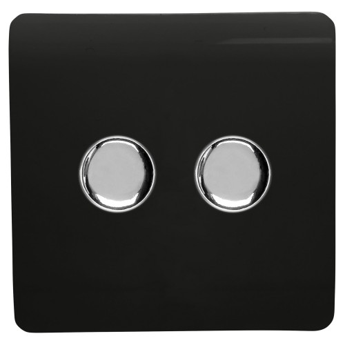 • Trendi 150W 2 Gang 2 Way Screwless LED Rotary Dimmer Switch - Gloss Black
