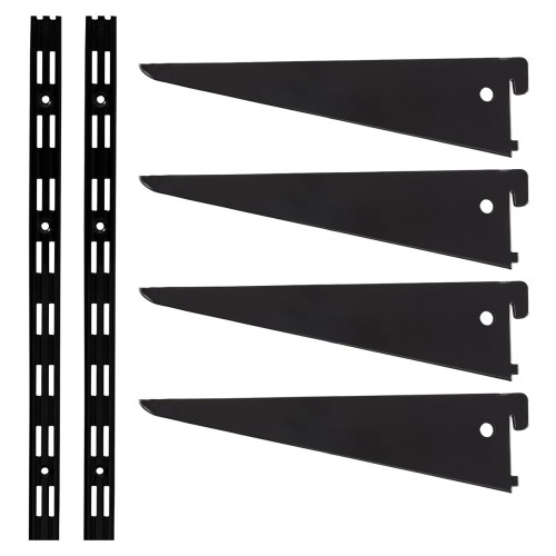 • Exel Twin Slot Shelving Kit - 2 x 2000mm Shelf Wall Uprights & 4 x 270mm Shelf Brackets - Black