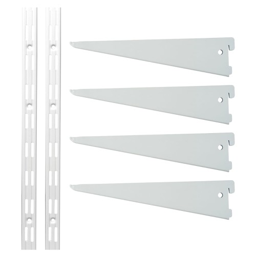 • Exel Twin Slot Shelving Kit - 2 x 2000mm Shelf Wall Uprights & 4 x 370mm Shelf Brackets - White