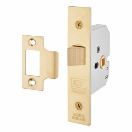 • UNION 2677 Flat Pattern Mortice Latch - 65mm Case - 44mm Backset - Polished Brass
