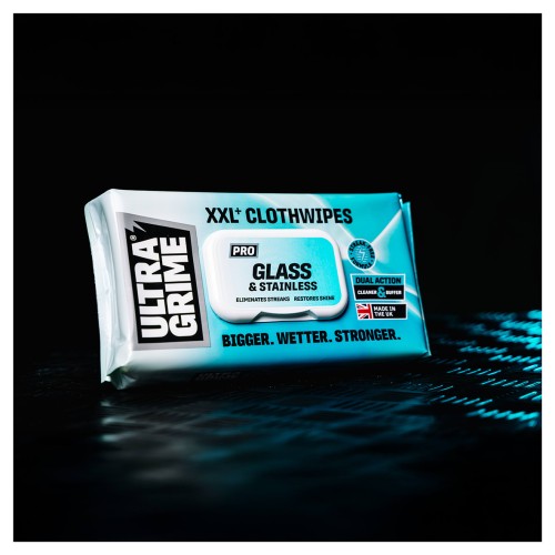 • UltraGrime pro glass & stainless steel XXL+ cleaning wipes are thicker, stronger and twice the size of standard wipes, ideal for heavy-duty cleaning jobs that demand more coverage and durability