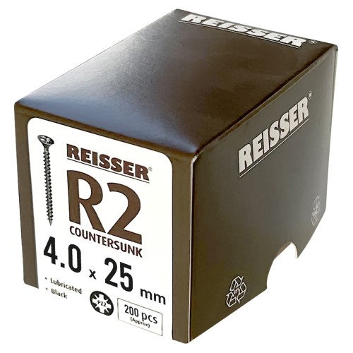 • Reisser R2 Pozi Countersunk Wood Screws - 4.0 x 25mm - Black Passivated - Pack of 200