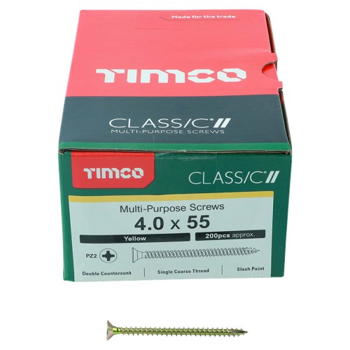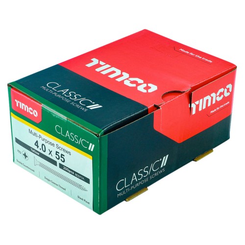 • TIMCO Classic Pozi Countersunk Wood Screws - 4.0 x 55mm - Yellow Zinc - Pack of 200