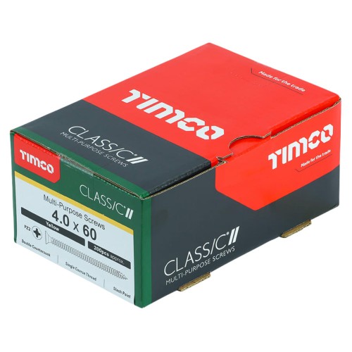 TIMCO Classic Pozi Countersunk Wood Screws - 4.0 x 60mm - Yellow Zinc - Pack of 200