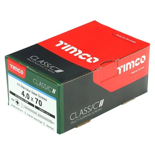 TIMCO Classic Pozi Countersunk Wood Screws - 4.0 x 70mm - A2 Stainless Steel - Pack of 200