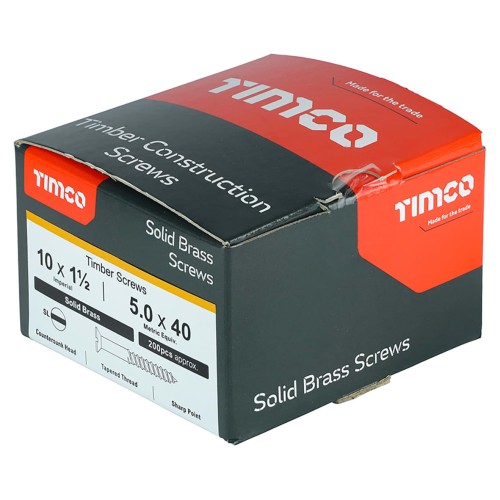 TIMCO Slotted Countersunk Wood Screws - 10 x 1 1/2" - Solid Brass - Pack of 200