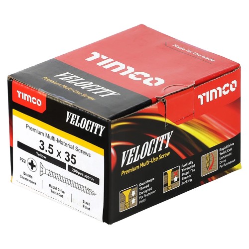 • TIMCO Velocity Pozi Countersunk Wood Screws - 3.5 x 35mm - Yellow Zinc - Pack of 200