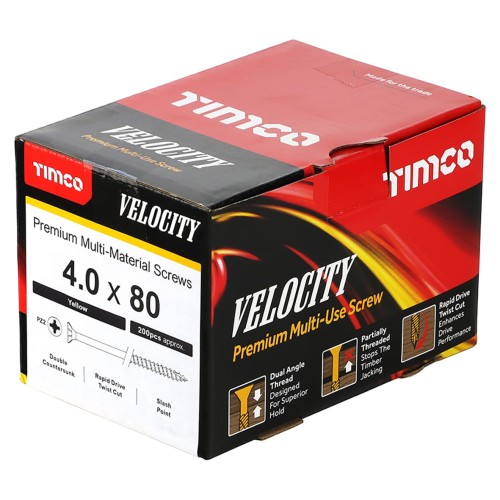 TIMCO Velocity Pozi Countersunk Wood Screws - 4.0 x 80mm - Yellow Zinc - Pack of 200