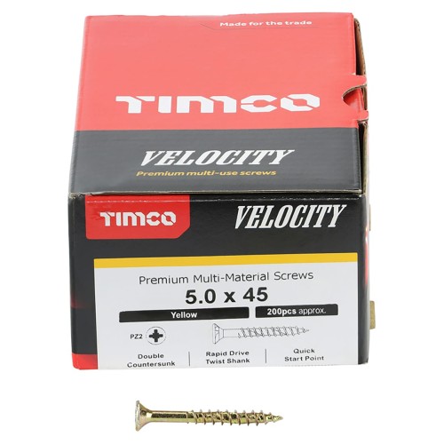 • TIMCO Velocity Pozi Countersunk Wood Screws - 5.0 x 45mm - Yellow Zinc - Pack of 200