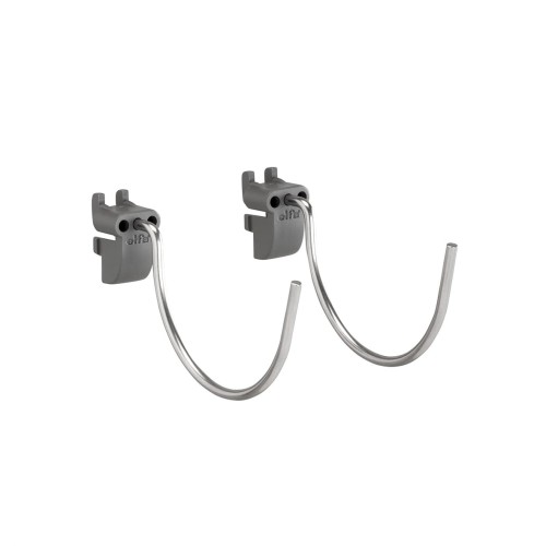 • The elfa Garage pack of 2 large round hooks to be used with the Garage storing board - purchase to build your own elfa system or to extend on a premade kit