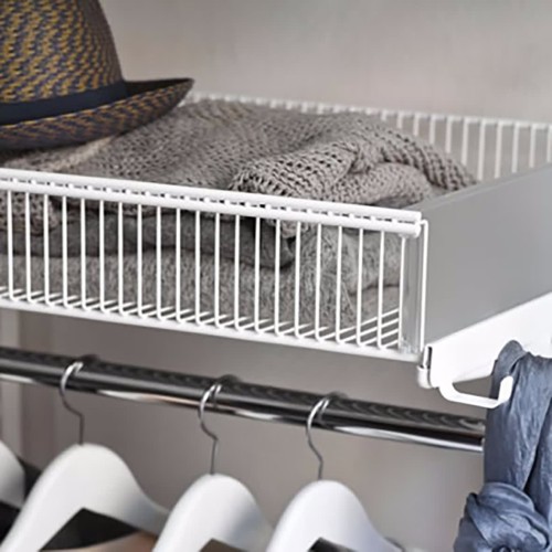 • Ventilated wire shelves are ideal for wardrobe interiors, pantry shelving or airing cupboards as they allow air to circulate around the items you're storing - purchase to build your own elfa system or to extend on a premade kit