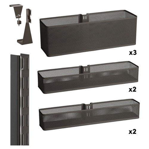 • elfa Wardrobe & Over Door Storage Kit - 1 Twin Slot Wall Upright & 7 Mesh Baskets - Graphite