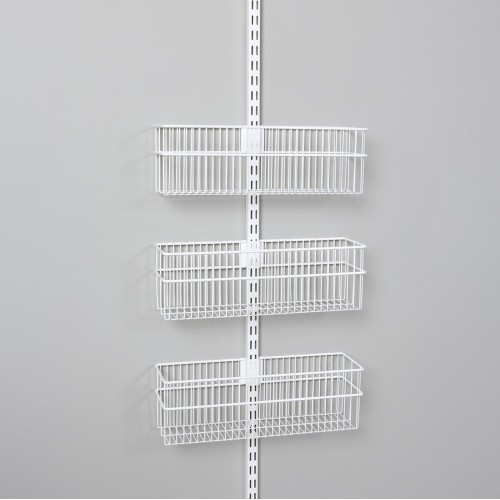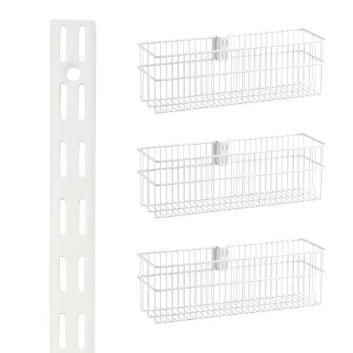 elfa Wardrobe & Wall Mounted Storage Kit - 1 x Twin Slot Wall Upright & 3 x Wire Baskets - White